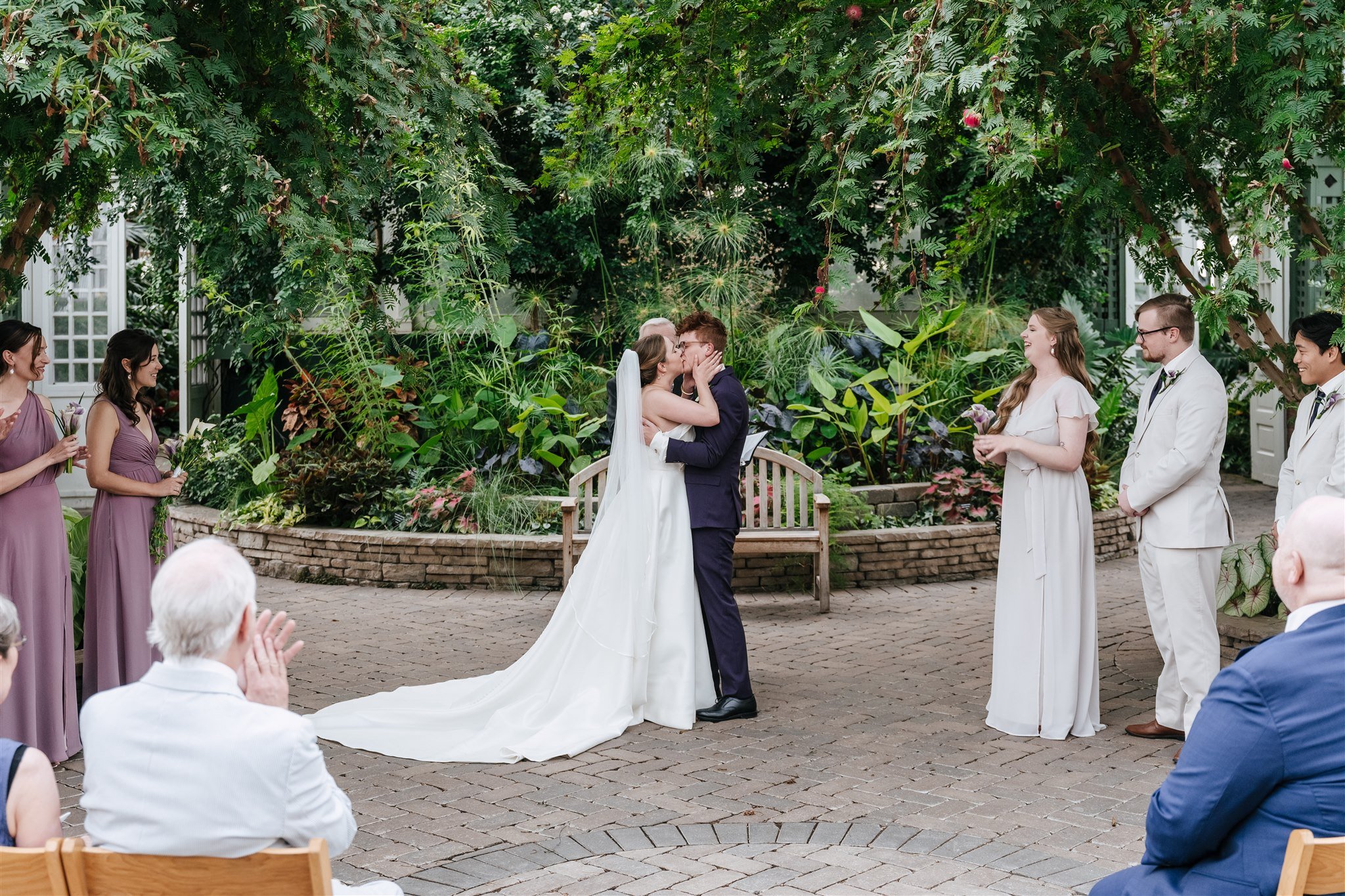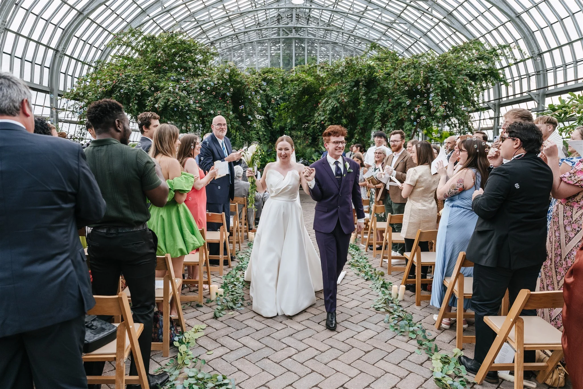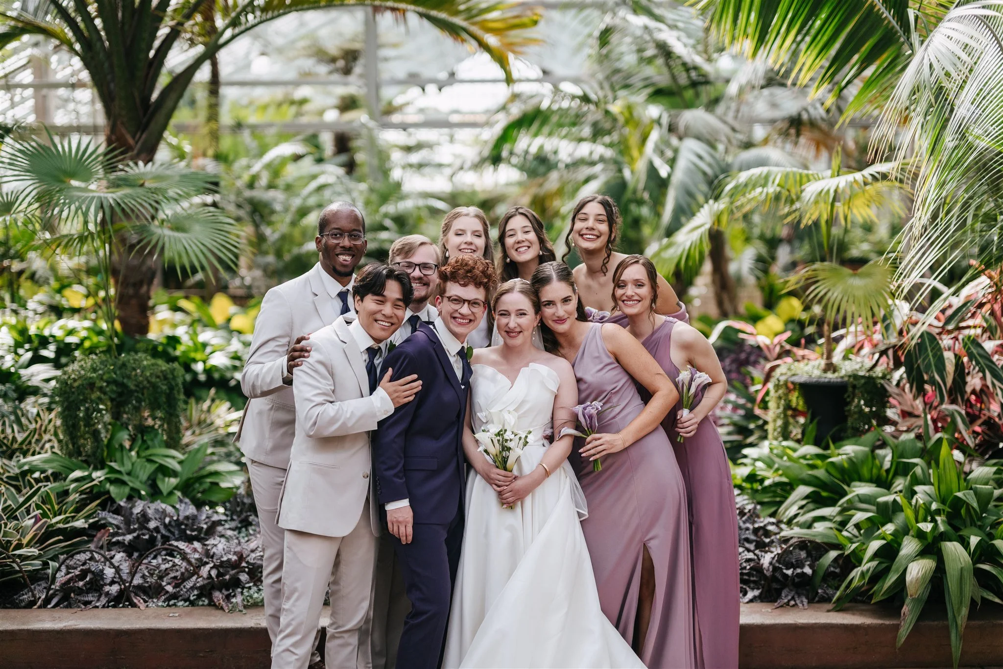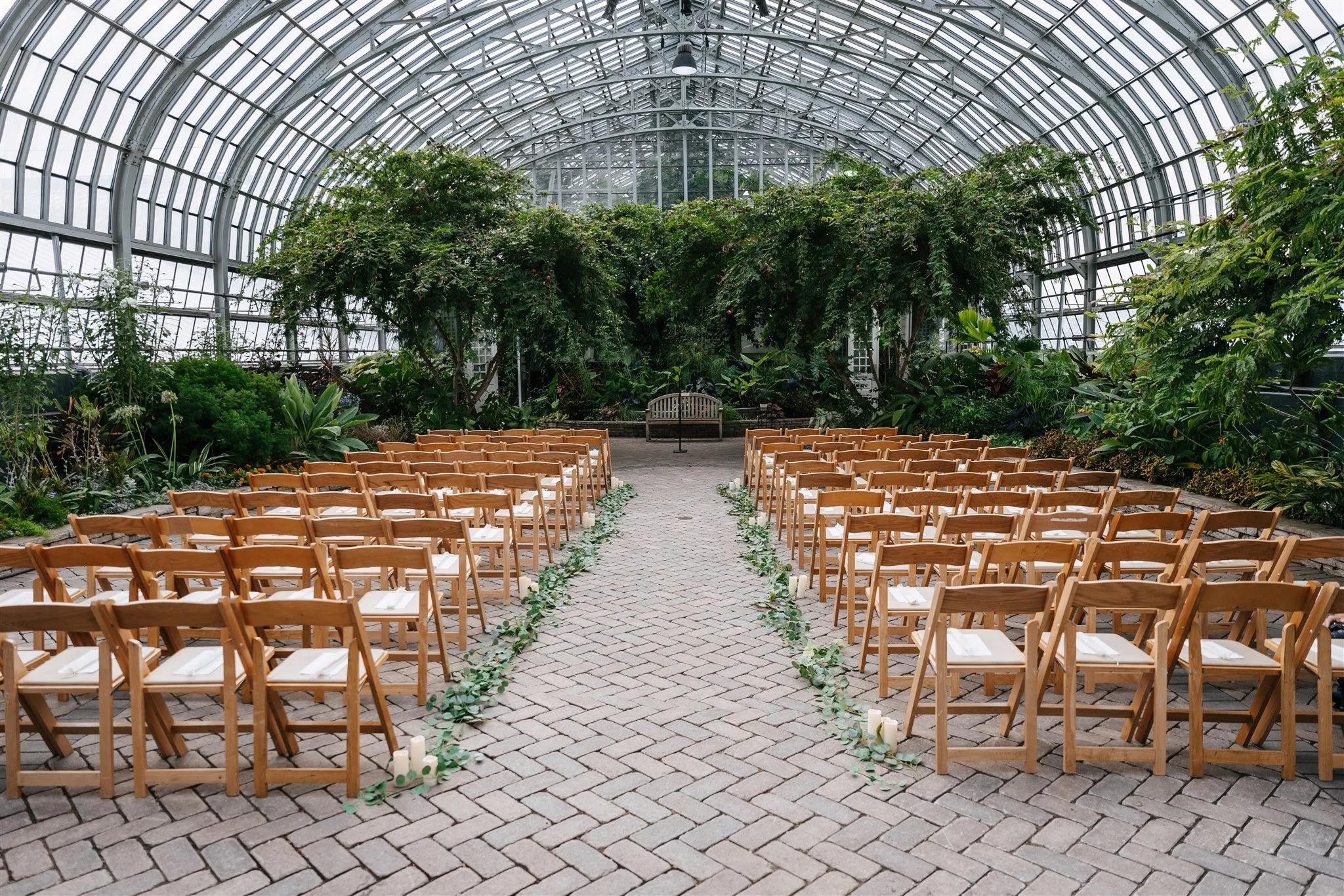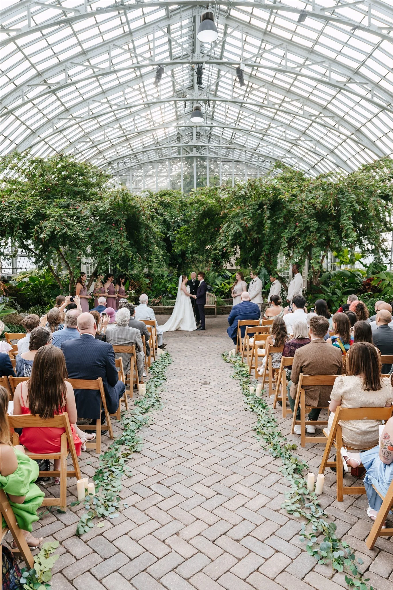 Sarah and Callen had such a romantic, fun wedding that we absolutely loved being a part of! They had perfect weather, the perfect venue, and SO much fun. We were their day-of coordinators and made sure that they and their family and friends were all able to have a good time together. The ceremony and reception both were at Garfield Park Conservatory in Chicago, and they were able to get amazing photos like they dreamed.