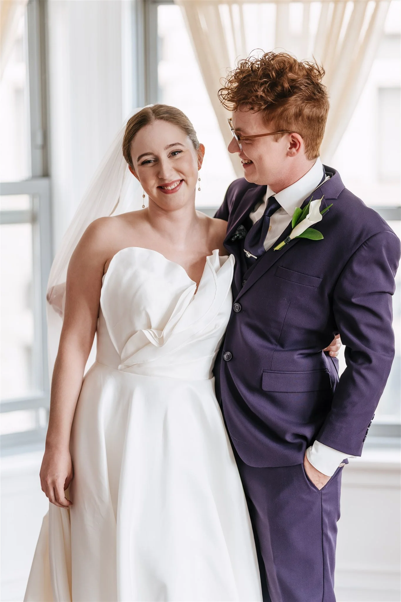 Both Sarah and Callen’s looks were perfect - we loved how unique and special both Sarah’s dress and Callen’s suit were! We had never seen a dress that had ruching like this and it reminded us of a flower, and then the color of Callen’s suit matching all of their details was amazing. They both looked so sharp and lovely and of course SO happy!