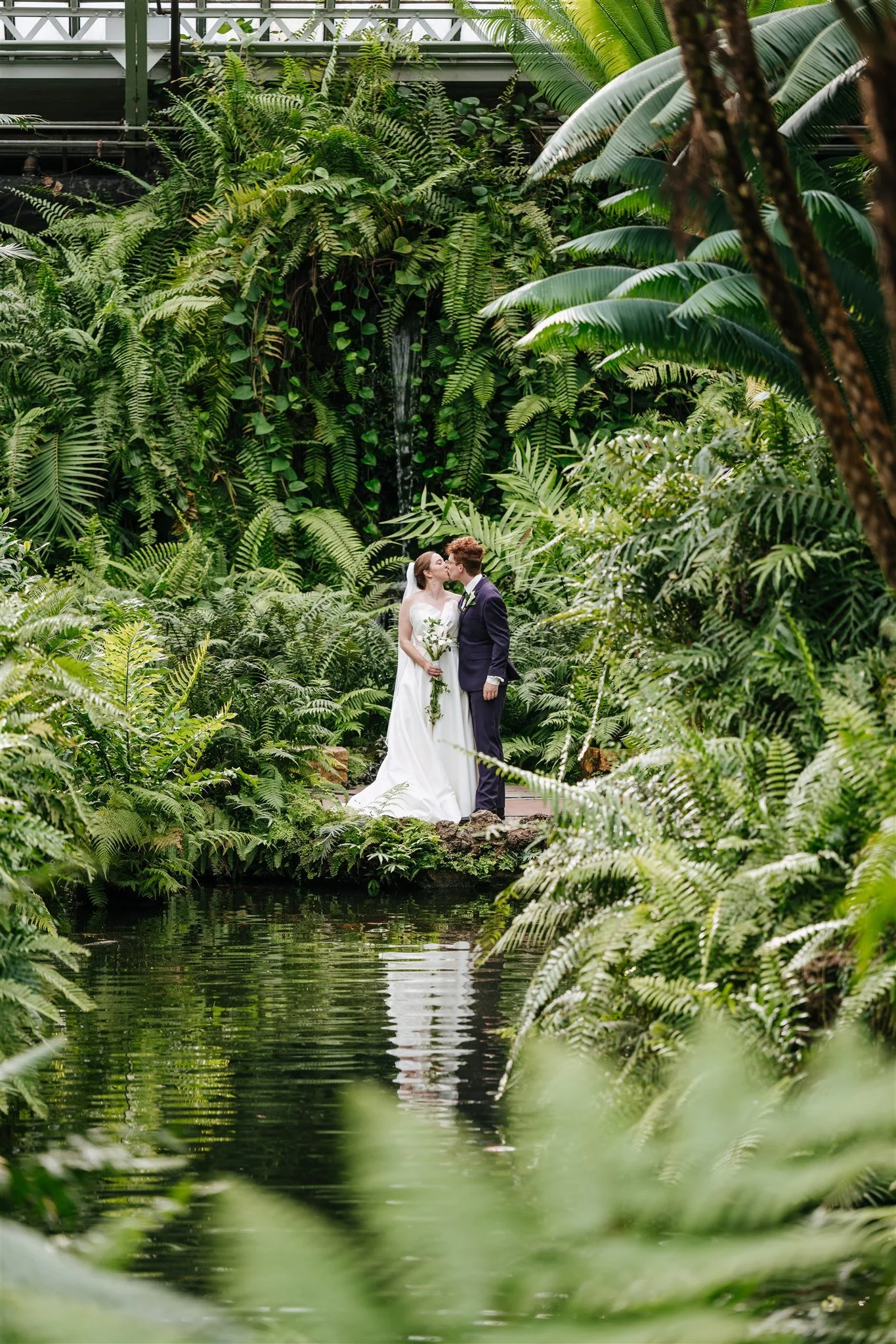 The first look and the photos started off a little behind schedule, but we were able to get things back on track later when they got to Garfield Park Conservatory. They started with a first look with Sarah’s uncle and dad, and then Sarah and Callen got to share their first look together which they were really looking forward to. Because of the space, their family and friends got to witness it too and it was a really sweet moment for everyone.
