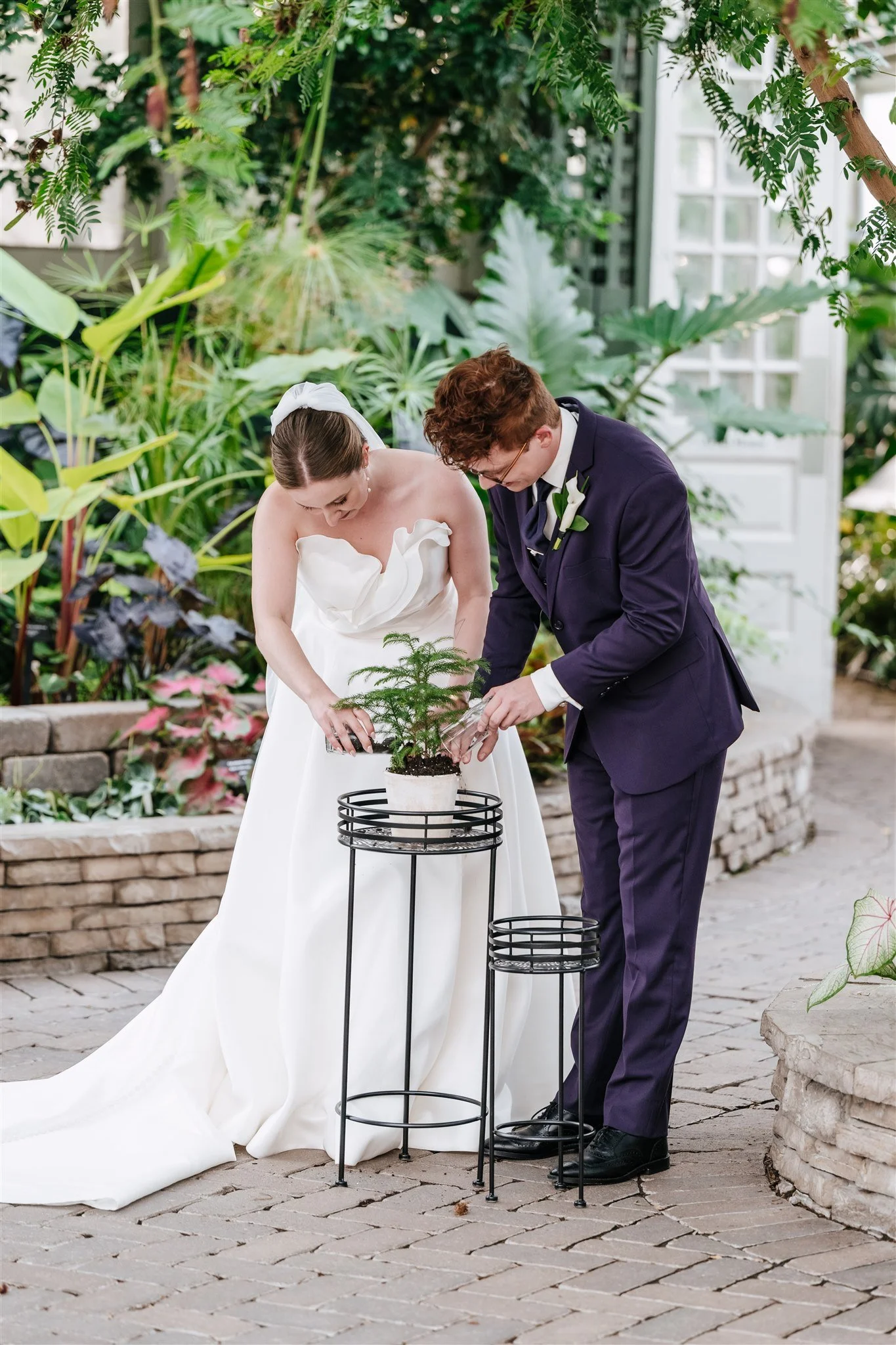 We planned for a quick ceremony and that we had - by the time that we wrapped up with the photos running a bit behind, we ended up being right on time for when cocktail hour was supposed to start. Sarah and Callen had a family member officiate and they also had a unity tree planting ceremony that was nice and personalized to them as a couple. We thought of course that the tree planting was very fitting to the space, too!