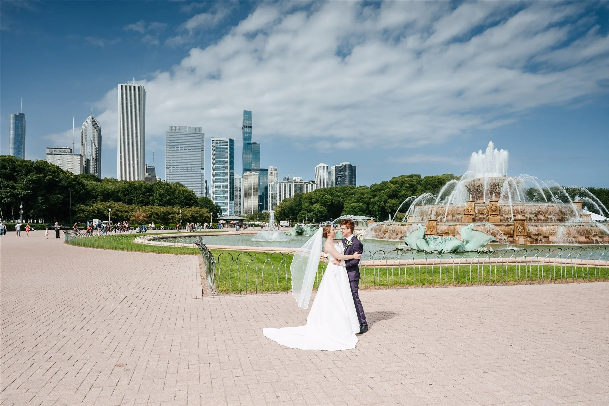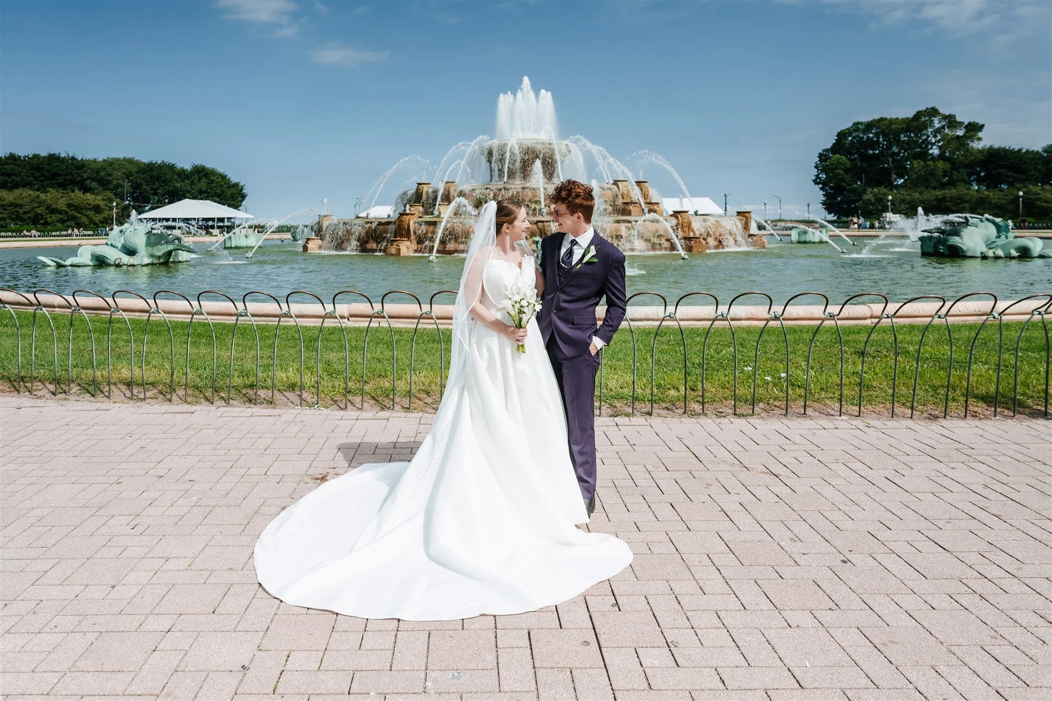 The weather was about 70 degrees for the whole day without it seeming too sunny or cloudy, and they had no rain on the radar which was perfect for their photo plans. Thankfully, they had a great backup plan of doing everything at the conservatory, but they really prioritized their time together in the morning for their first look, having photos at both the Buckingham Fountain and Garfield Park Conservatory, and getting to dance with their family and friends without worrying about a thing. Sarah said the photos that they were able to have to remember the day meant a lot to her and Callen said that the food was something he was excited about too. We couldn’t wait for their big day to finally get them married and we are so glad they had a nice time!