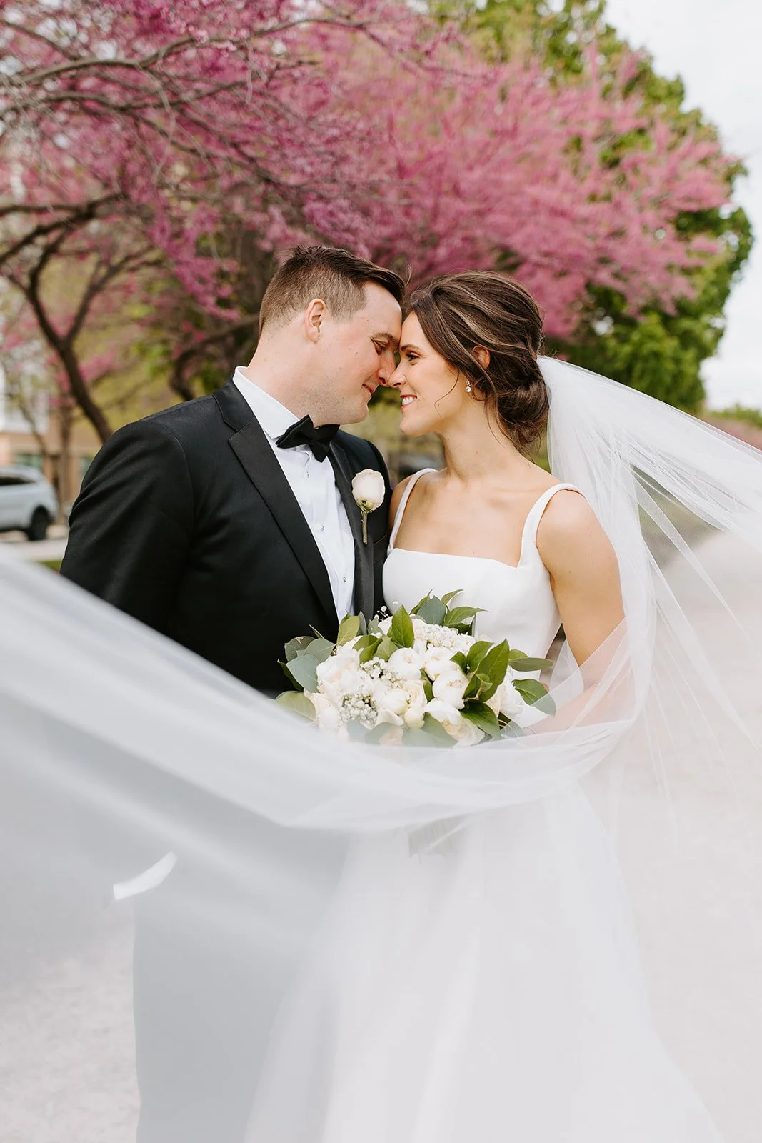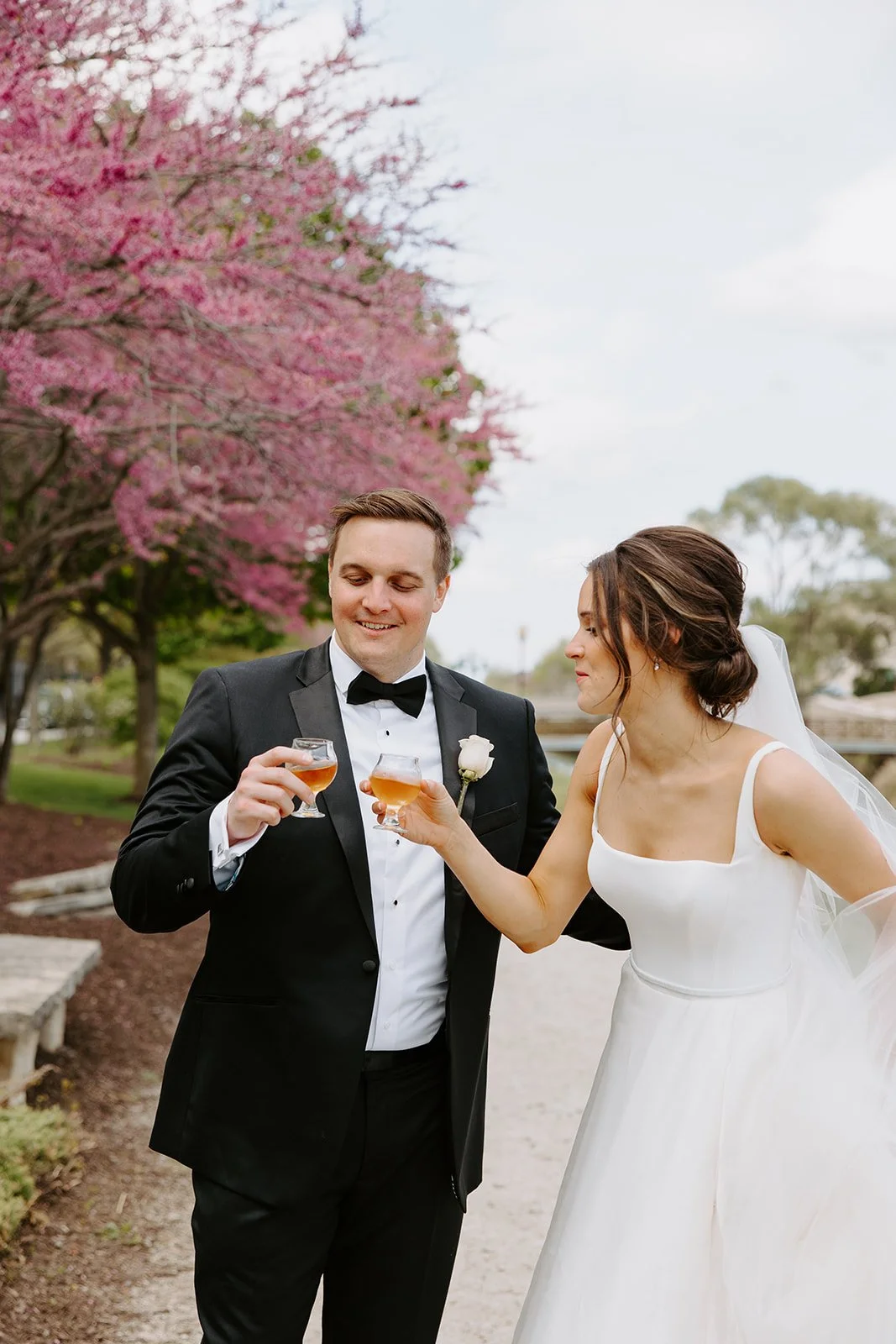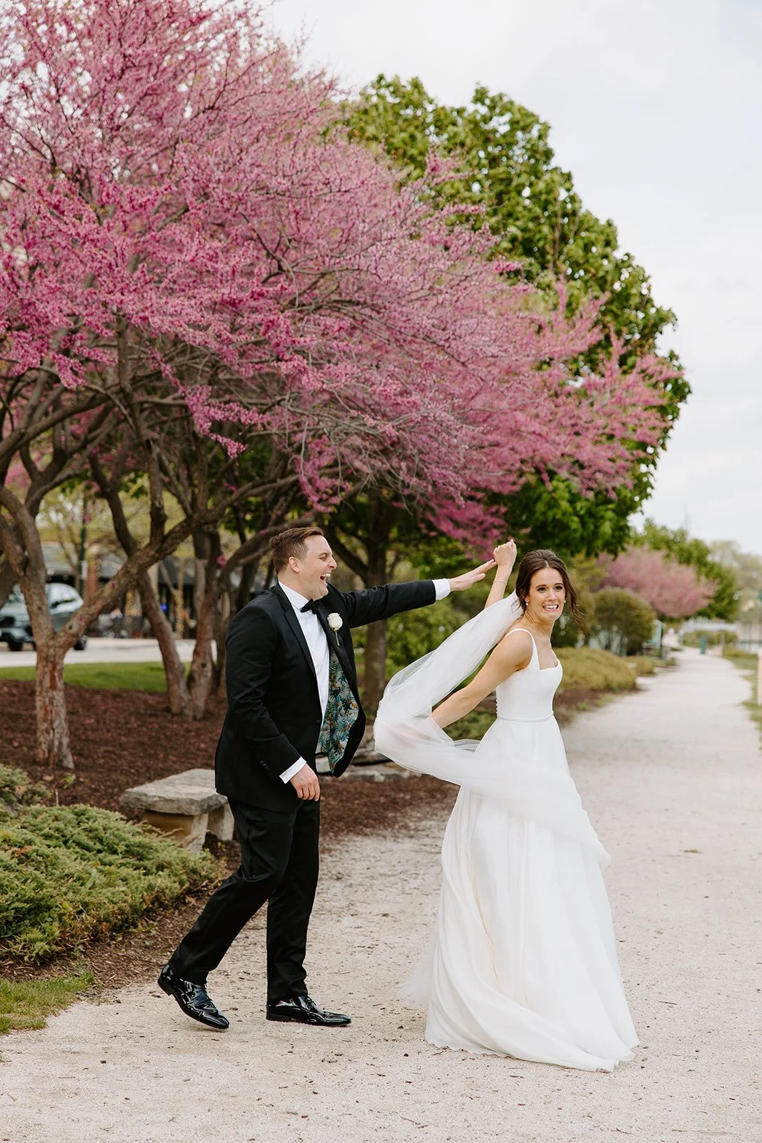 This Chicago and Lombard wedding day in April truly was one of the most fun because we had such a sweet couple! Danielle actually is a twin sister of a wonderful bride we worked with back in New Years Eve of 2022 and it was so much fun. We provided day-of coordination for both of them and it was a joy! Danielle and Bob were attached at the hip and really prioritized spending the day together with each other and with their family and friends. The ceremony took place at St. Christina Catholic Church in Chicago and the reception was at Harry Caray’s in Lombard. Thankfully, we didn’t have any rain but we definitely had to battle the wind!