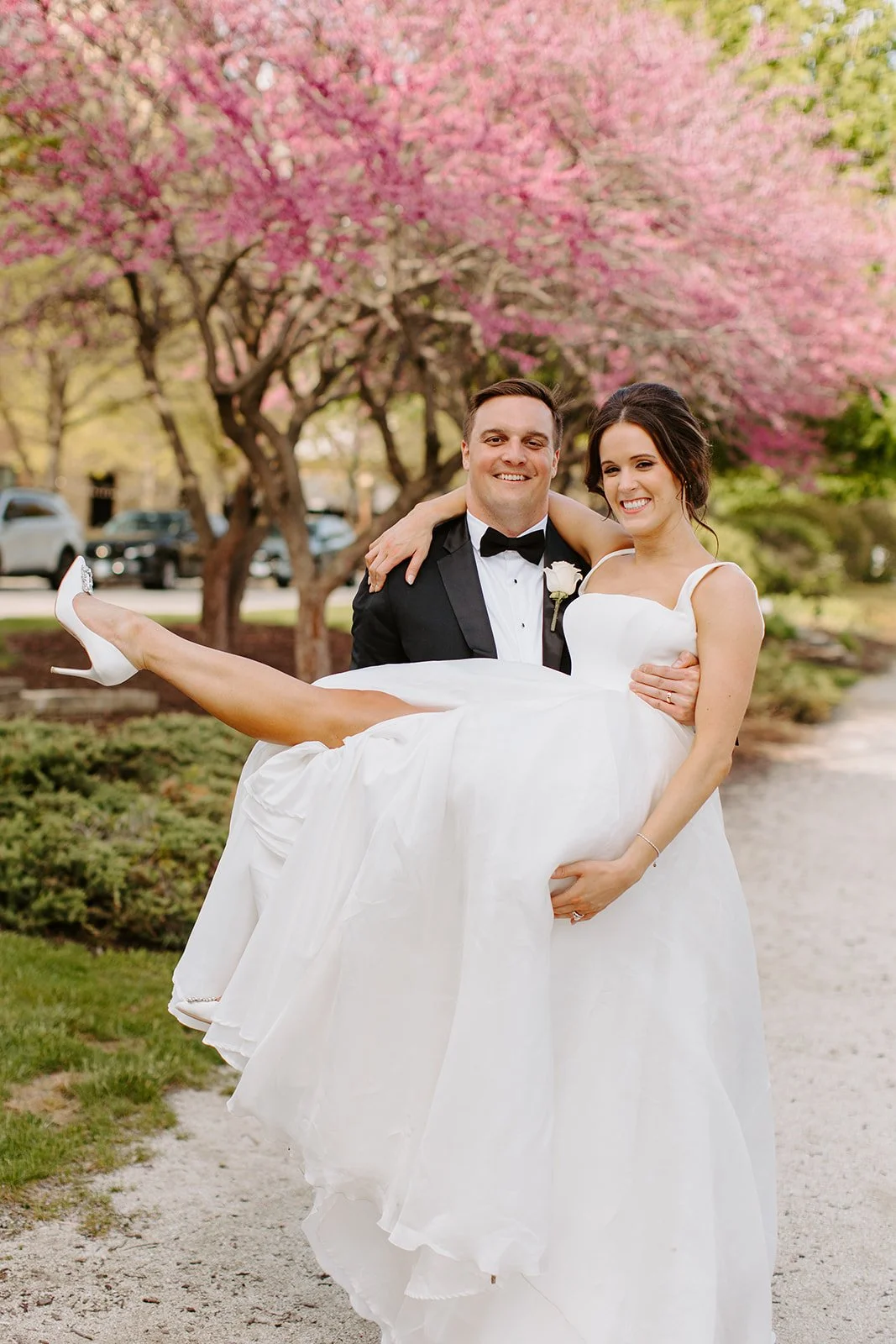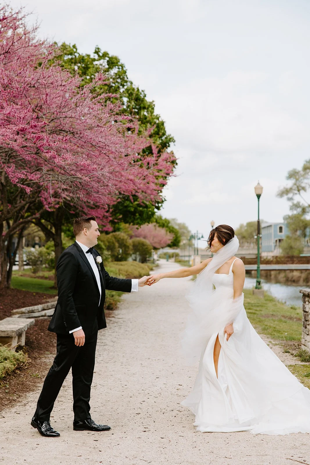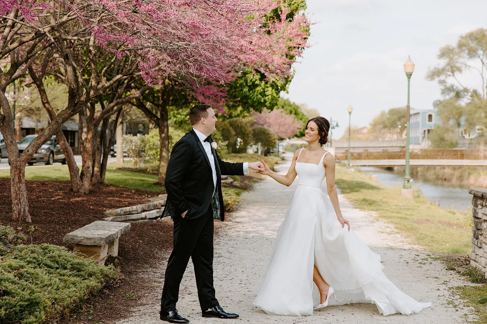 This Chicago and Lombard wedding day in April truly was one of the most fun because we had such a sweet couple! Danielle actually is a twin sister of a wonderful bride we worked with back in New Years Eve of 2022 and it was so much fun. We provided day-of coordination for both of them and it was a joy! Danielle and Bob were attached at the hip and really prioritized spending the day together with each other and with their family and friends. The ceremony took place at St. Christina Catholic Church in Chicago and the reception was at Harry Caray’s in Lombard. Thankfully, we didn’t have any rain but we definitely had to battle the wind!