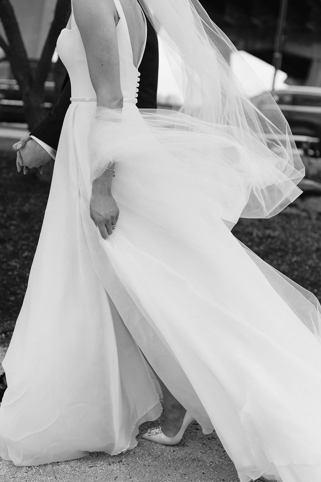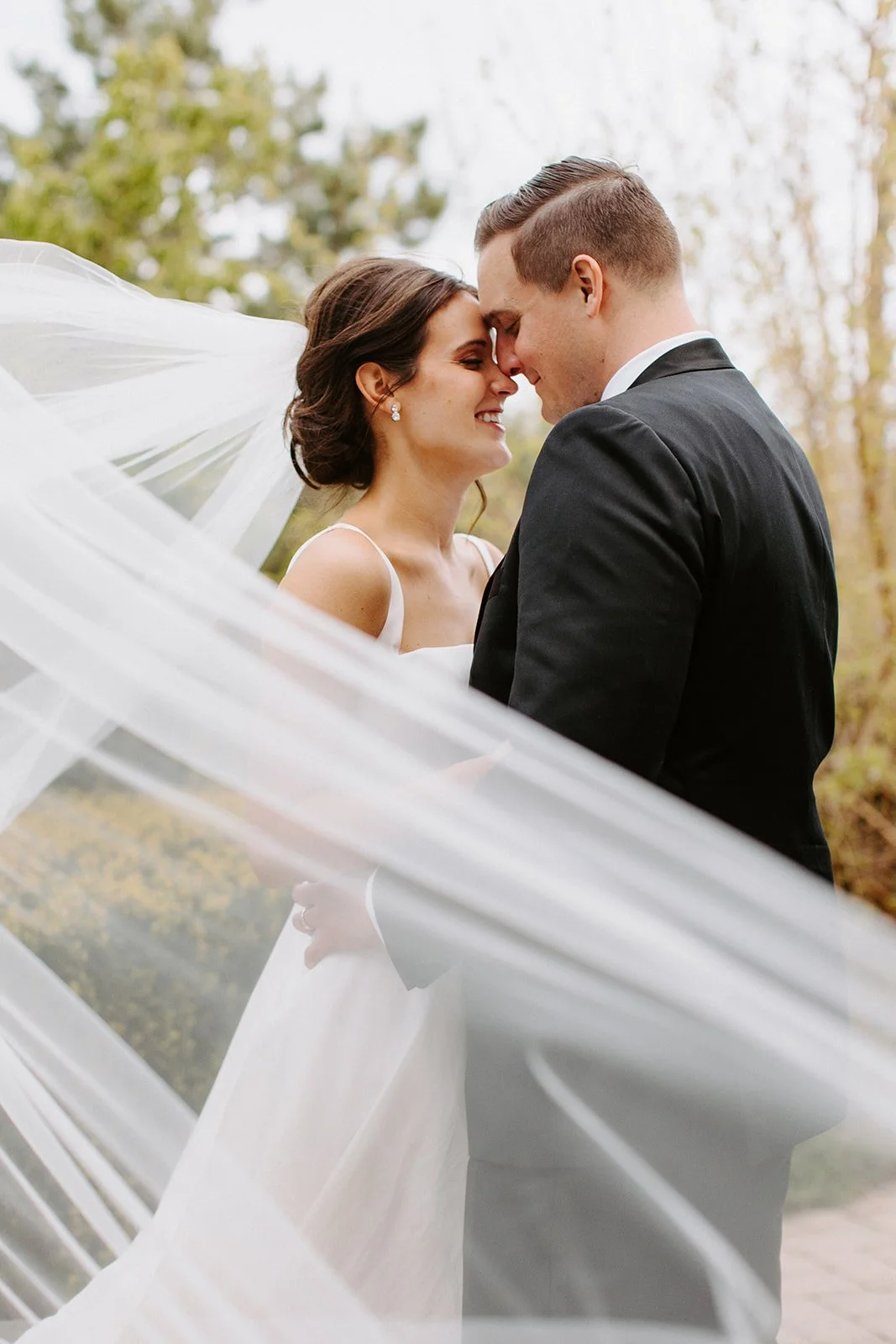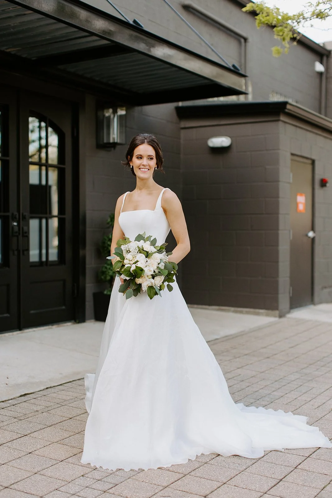Danielle’s look definitely was classic and sleek - we LOVE the square neckline since you don’t see that too often! It definitely fit her personality so well with the gorgeous hair and makeup too and she looked absolutely beautiful. She did have a long, cathedral-length veil to go with it, but the wind of the day couldn’t keep that for long while outdoors.