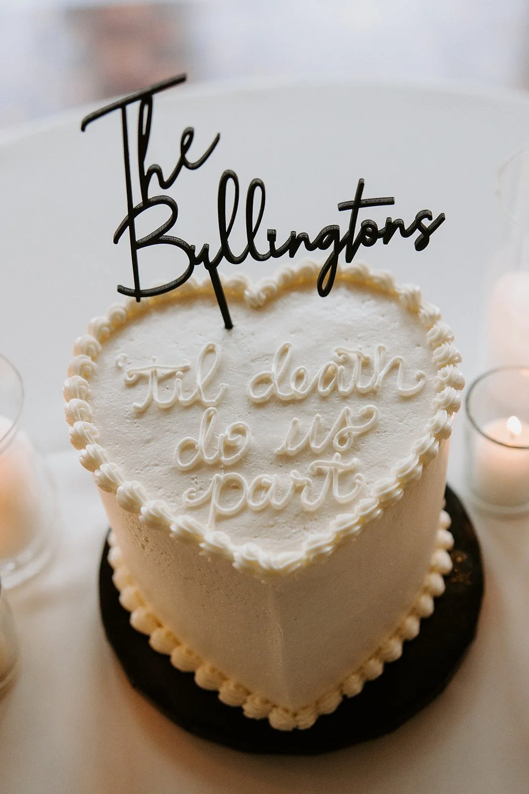 We moved into the reception with the grand entrance and the cake cutting. Creative Cakes did a fantastic job with their modern, heart-shaped cake!