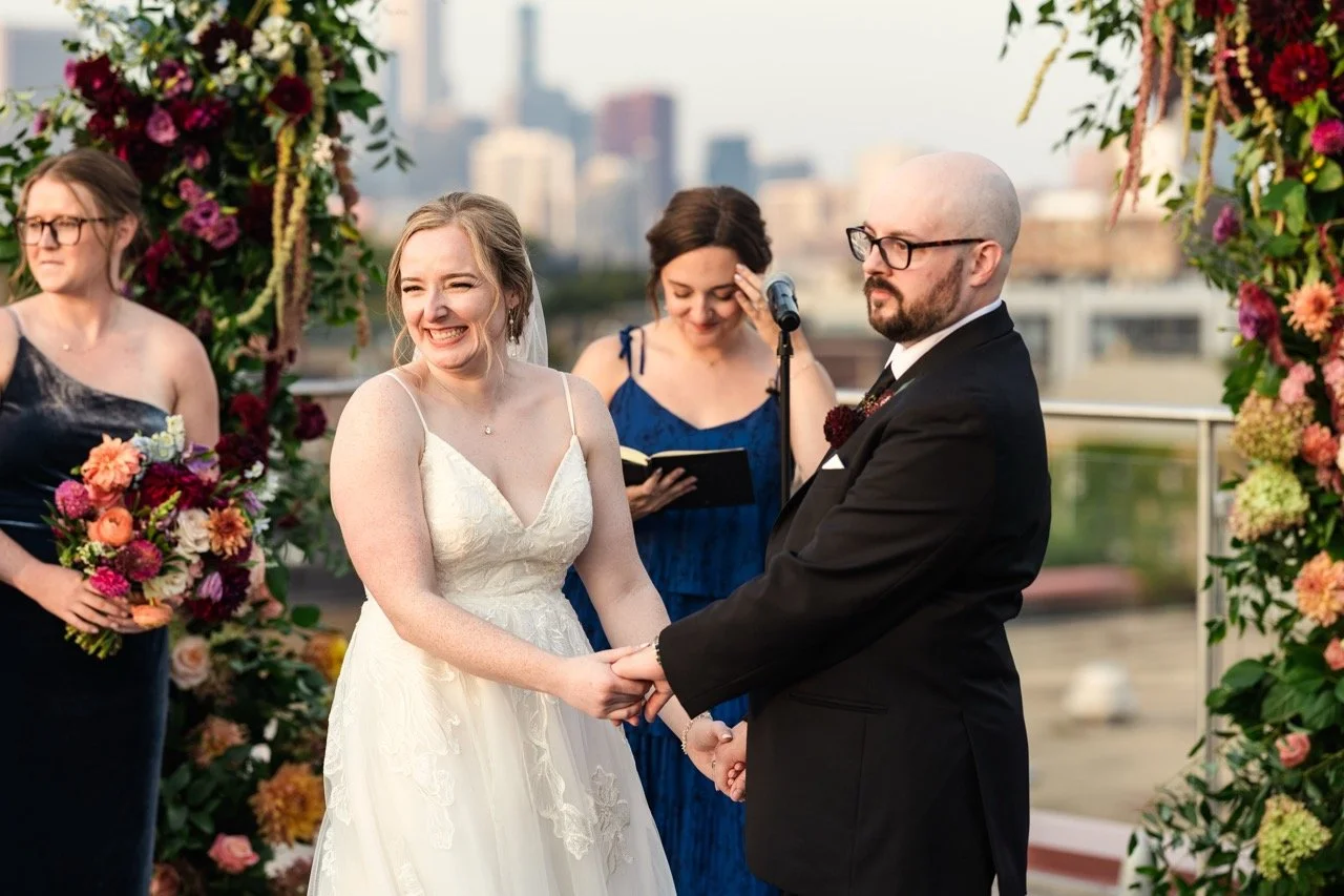 Fionna and Brendan really leaned into the “Chicago” theme of it all with the beautiful, unique venue, the personalized favors and the seating chart matching their favorite bands, and the perfect skyline view of the city for their outdoor ceremony on the Skydeck. Everything on their wedding day happened so fast even though we started off a bit behind - but once we got things on track we had the dancing start right on time thanks to our buffer time in the timeline!