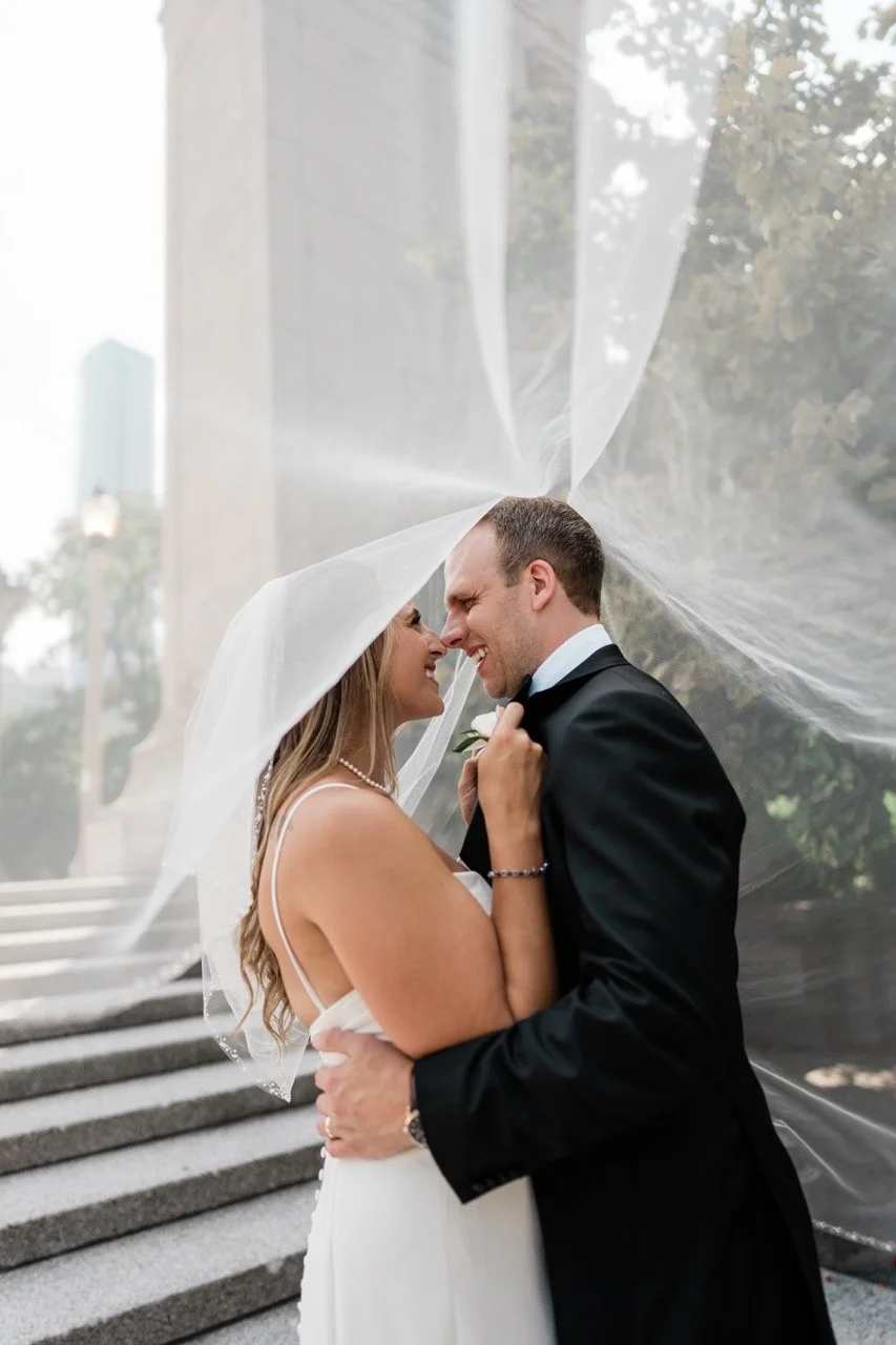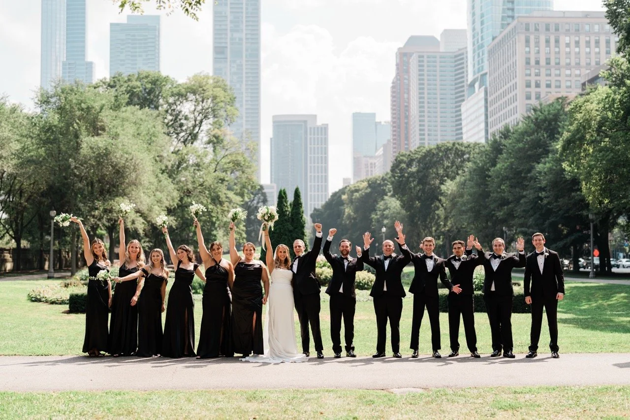 The first look and all of their wedding party photos were at Grant Park which was directly across the street from the venue. Connor and Michelle had such a sweet moment together soaking in the fact they were getting married and then also did their personal vows before all of their wedding party photos. Having the photos downtown really helped also have a variety in backgrounds like the nature in the park and the architecture of the city skylines, which we absolutely loved! Fox + Ivory did an amazing job candidly capturing Michelle and Connor’s love while providing a little posing direction to get some of these beautiful shots.