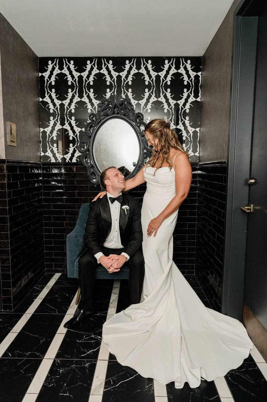 Once Michelle, Connor, and their wedding party got back to the venue, they did all of their formal family portraits so they didn’t have to do any photos after the ceremony, and then took some really lovely shots throughout the venue. This was a priority for them so we allotted extra time to make sure they didn’t have to hide from guests before the ceremony!