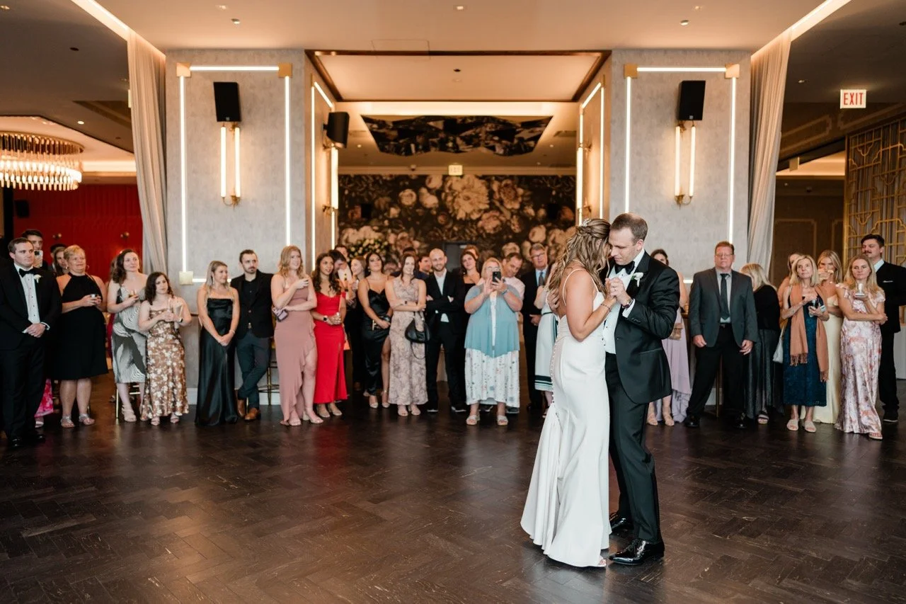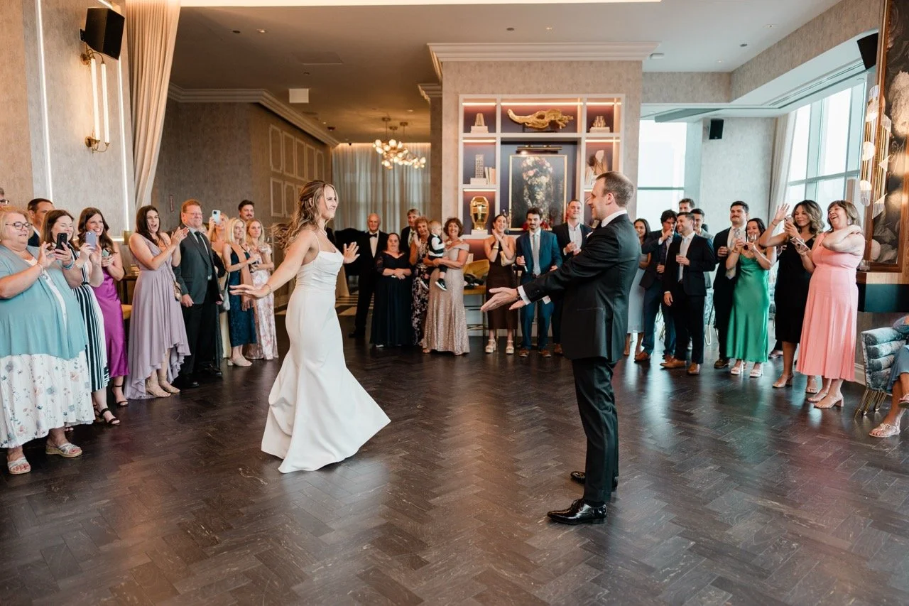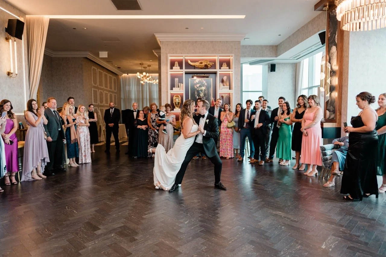 One thing we were really working hard to make happen was getting the couple to the dance floor as quickly as possible - Michelle and Connor really didn’t want dinner to drone on and make it feel boring. Thankfully, we were able to move quickly through dinner and shift our plans for speeches in a way that actually got the dance floor open 20 minutes sooner than we expected!! It was absolutely amazing to see Michelle and Connor’s beautifully choreographed dance, thanks to Windy City Wedding Dance, to kick off the dance floor.