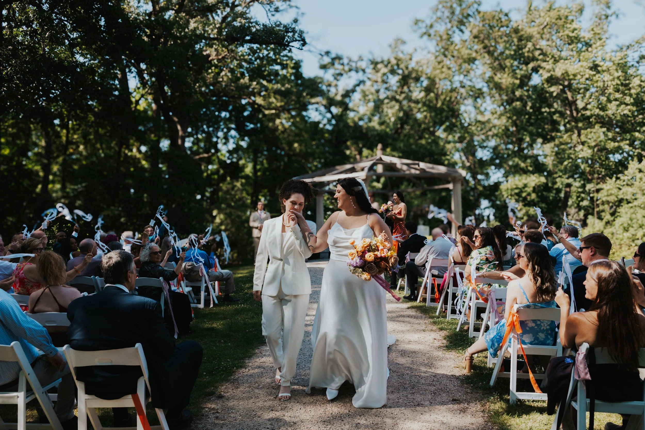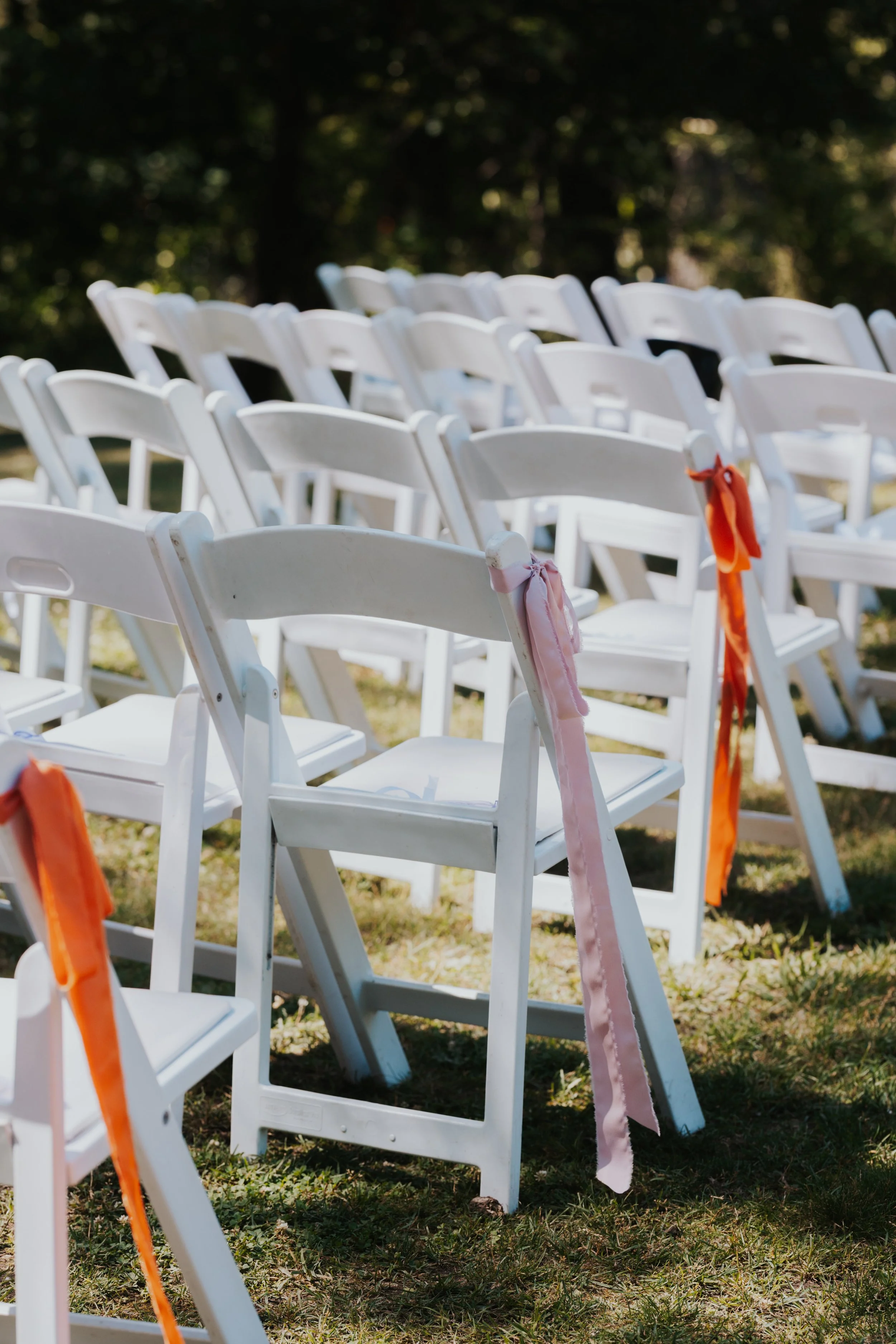 Maria and Margaux’s wedding ceremony was lovely - they had a unity wine box that they put together during the ceremony and we thought the ribbon details on the chairs were such a nice, sweet touch too.