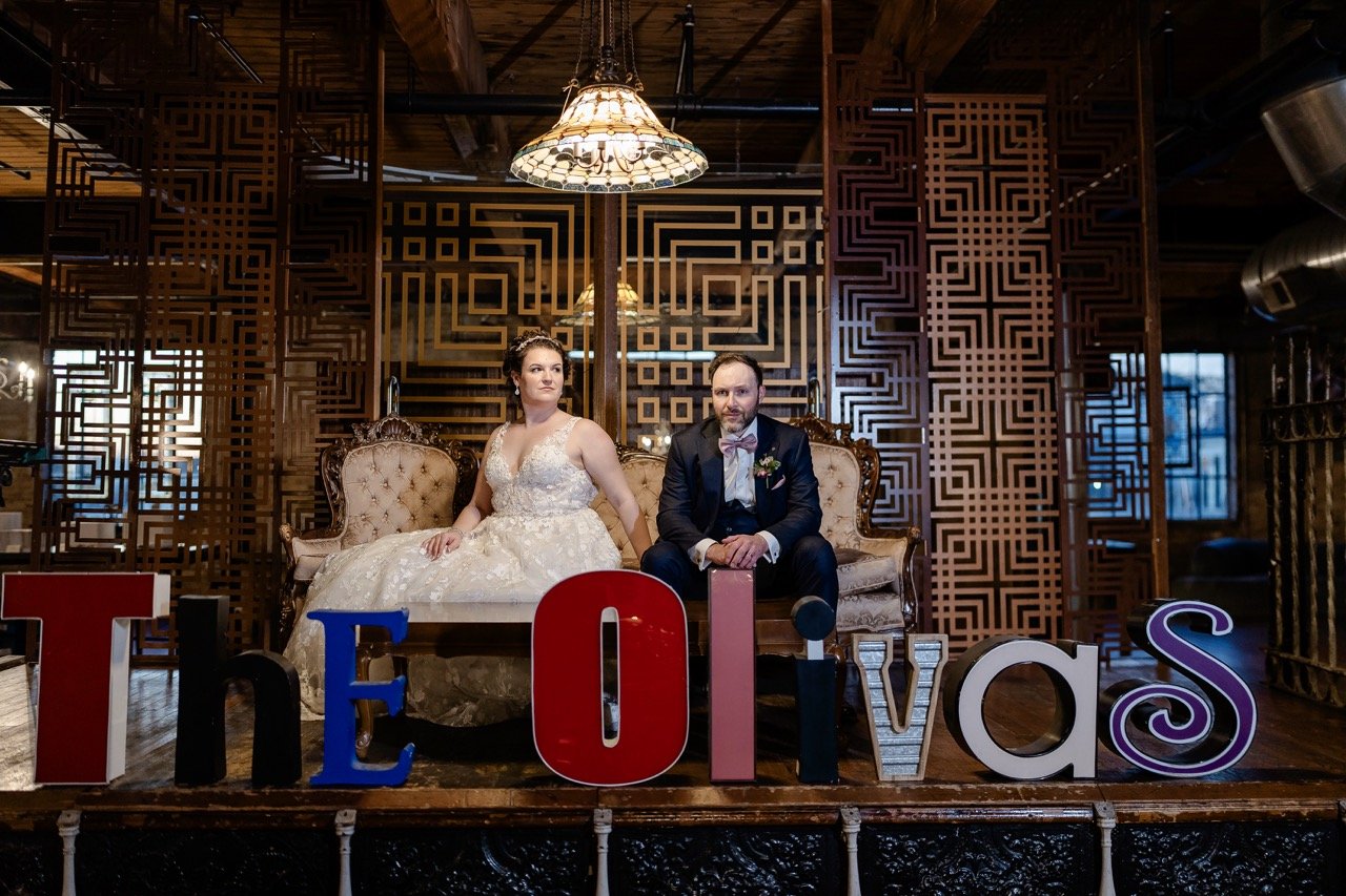 There is also a wedding suite that has two adjoining rooms with a larger common area on the second floor. This is a great place that your wedding party can hang out - or, it’s a perfect place for you to take a moment alone with your partner for some private drinks and appetizers after the ceremony. The capacity in the suite is for up to 60 guests though, so there’s PLENTY of room for your whole wedding party to gather before the ceremony! We absolutely love the vintage furniture throughout the whole space, but many couples hang out in here and get some beautiful photos next to the large windows.