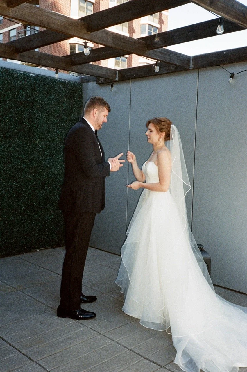 Traditional vows are just as special as written ones in our opinion. Typically, these traditional vows are administered by your officiant and often end in “I do”. They are often a back and forth conversation between you and your partner. Telling each other what you promise to do, be and act throughout your marriage and for the rest of your lives. Having this tradition be a part of your wedding day, in our opinion, helps it become more real. It’s what we have always seen in the media and growing up. Traditional vows are a really loving addition to your day!
