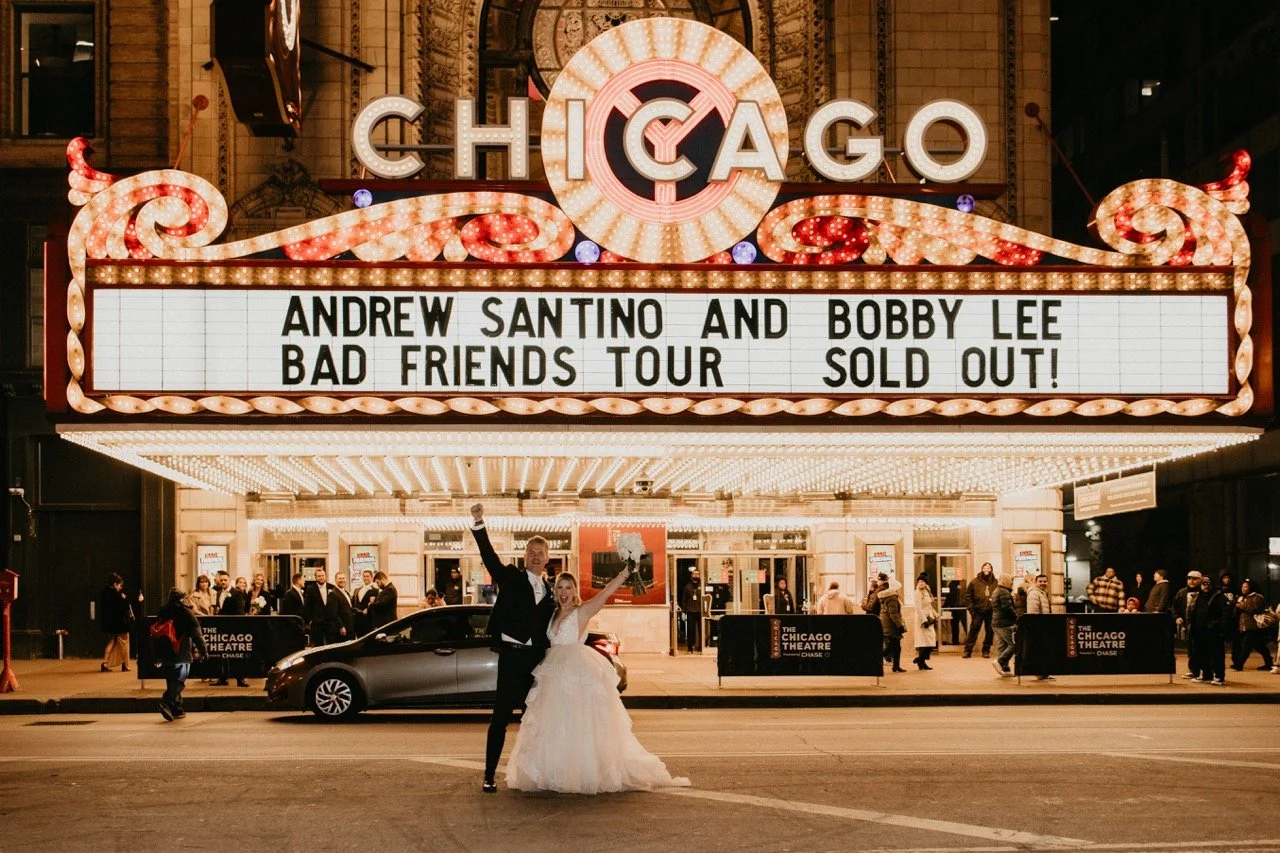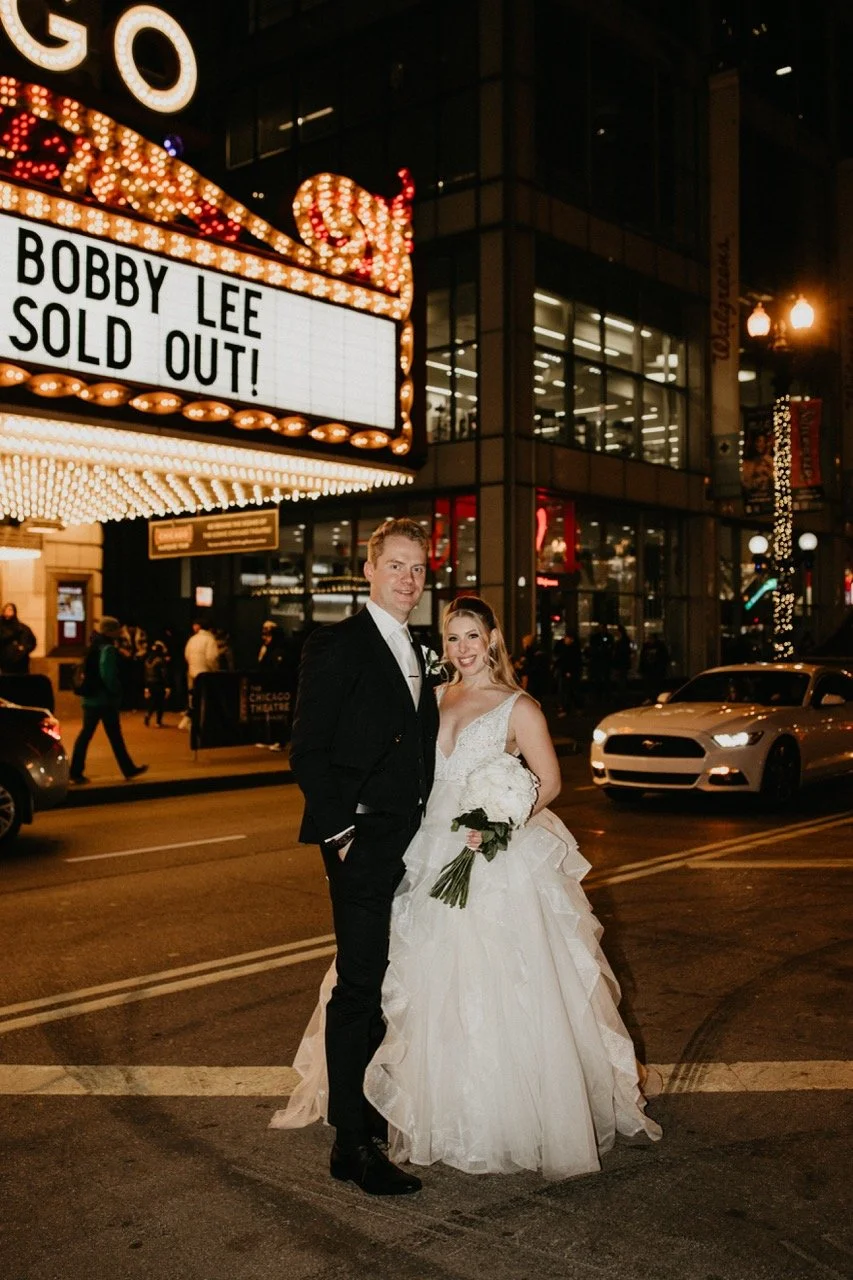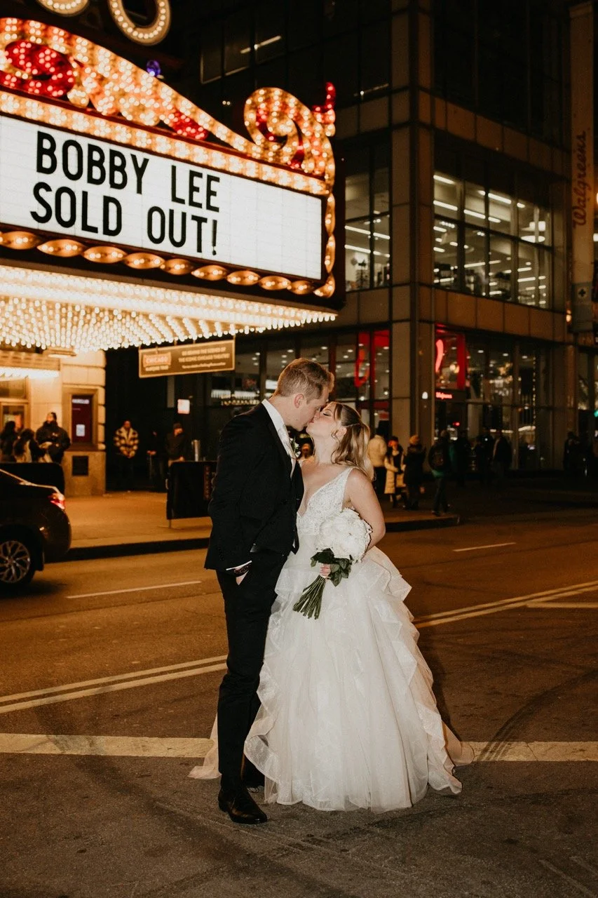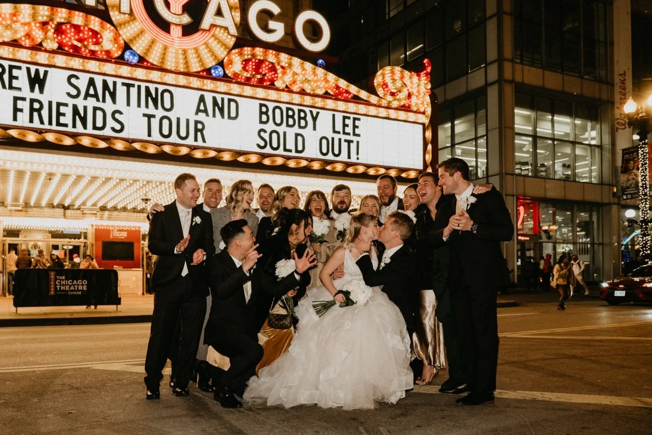 Before the end of the night, Taylor, Braden, and their wedding party went out to the theater district to take some cute photos! It was definitely fitting for their personalized wedding day, but I was shocked that they were all willing to brave the cold!