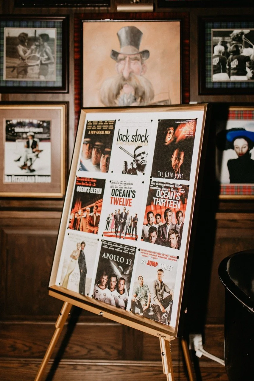 Our personal favorite detail of the wedding day was the seating chart - the couple used classic movies as the table “numbers” and added their guests’ names into the cast list for them to find their table! We thought that this touch was so unique and spoke so much to the couple and what is important to them.