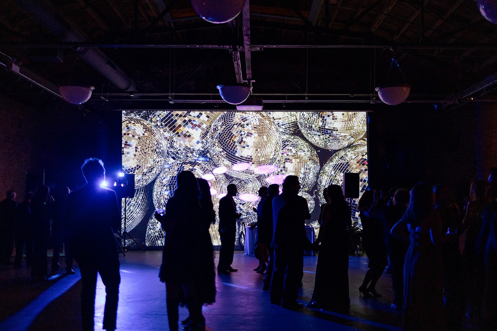 Massive projector that you can have with personalized details like a welcome message/sign, seating chart, or dance floor decor that you didn’t even need to bring with you to set the tone for the night!