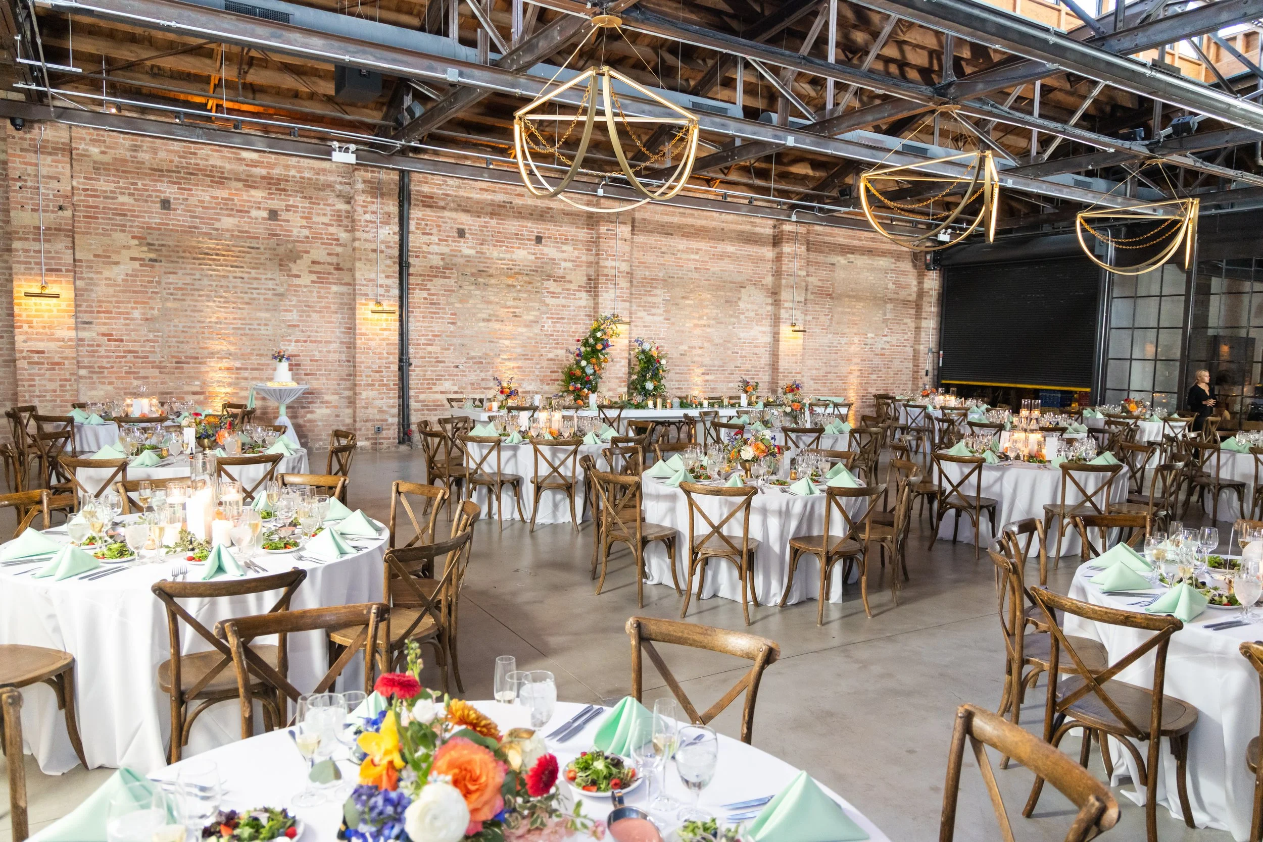 When the cocktail hour ends, all of the curtains are opened for guests to find their seats and have a grand reveal of the dinner space. We love seeing how much your guests love the reveal too! After dinner concludes, your guests are usually asked back into the “cocktail hour space” for formal dances and open dancing - your guests though can hang out in any part of the building to get away from the music and sit at their seats or dance the night away! The receptions typically end at 12am and then vendors have until 1:30am to load out. Overall, the flow of the weddings here is absolutely perfect in our opinion, and we have seen a lot of events as wedding coordinators and planners!